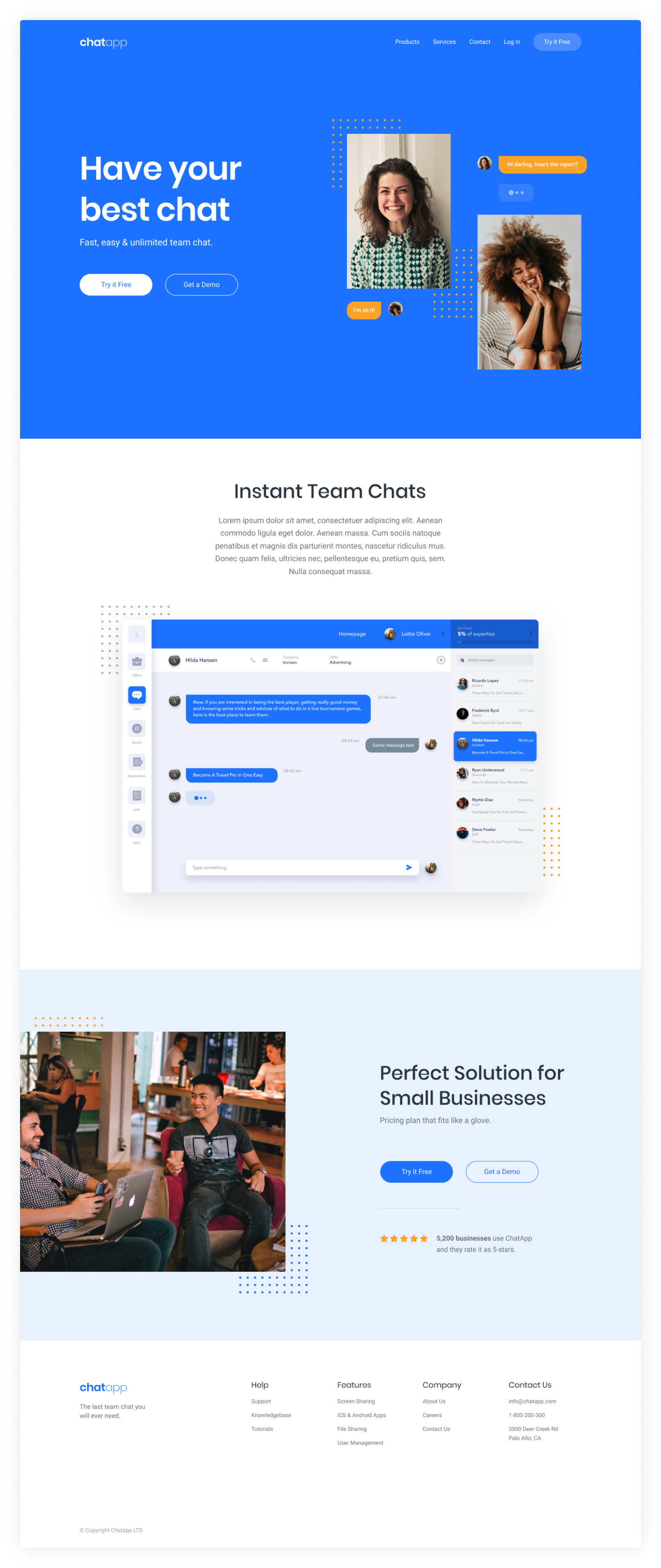 This is a homepage design and build for a concept project – a chat application. I have designed the page first then later built a responsive page in Webflow.